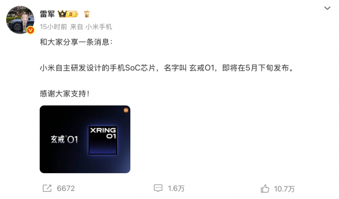 就在昨晚,雷总毫无预警的官宣了无数米粉期待已久的产品——「玄戒O1」,发布时间定于 5 月下旬。