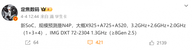 另外根据某数码博主爆料的消息称,玄戒O1的规格相当出色,会比预想的强,性能对标骁龙8 Gen2。但是信号基带这块还需要找大厂外挂,毕竟这东西就连苹果都搞不定,小米还需要时间一步步来就行。