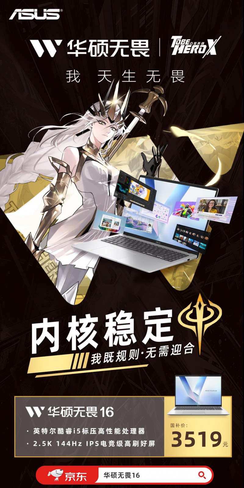 目前,华硕无畏16 酷睿版正处于超值选购阶段,入手即可享20%国家补贴,到手仅3519.2元,购机赠正版Office软件,各位“凸变粉”们可以考虑入手。