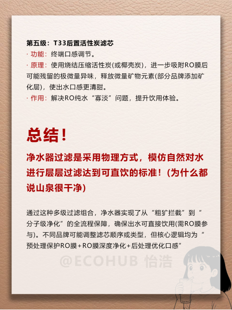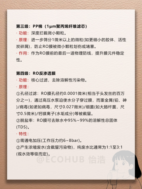 1. 传统净水器的过滤原理是模仿自然以物理方式对水进行层层过滤,从大颗粒杂质到分子级,达到可直饮标准