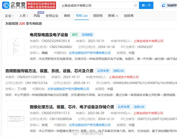 此外,由小米集团高级副总裁曾学忠担任法定代表人、执行董事的上海玄戒技术有限公司、北京玄戒技术有限公司目前已公布数百项专利。