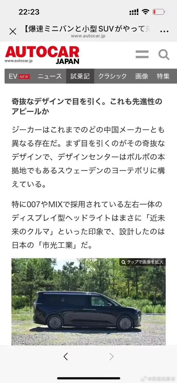 他转发的报道称:“极氪与以往任何一家中国厂商不同。首先吸引眼球的是其奇特的设计,设计中心位于沃尔沃的总部瑞典哥德堡。特别是 007 和 MIX 中采用的左右一体的显示型头灯,给人的感觉简直就是“近未来的汽车”,由日本的‘市光工业’设计”。