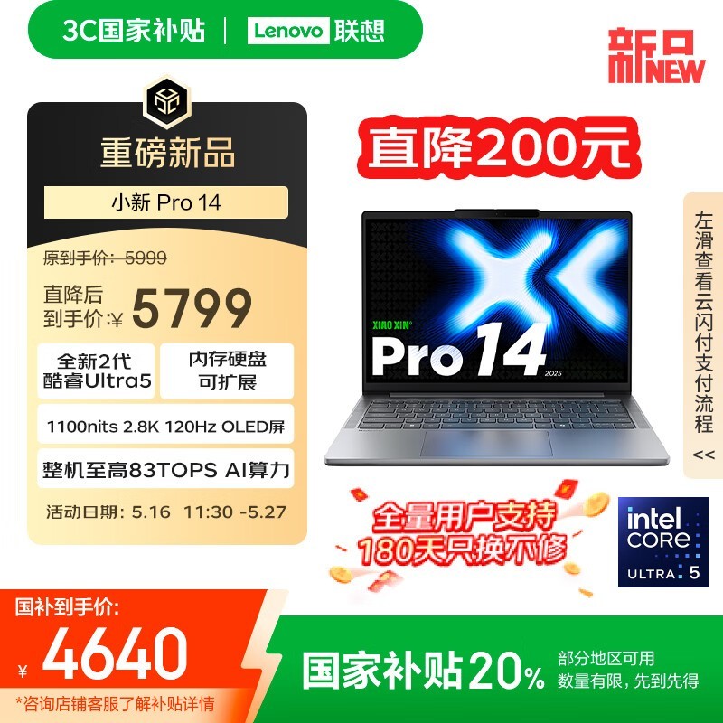 联想小新Pro14 2025轻薄本京东促销价5889元