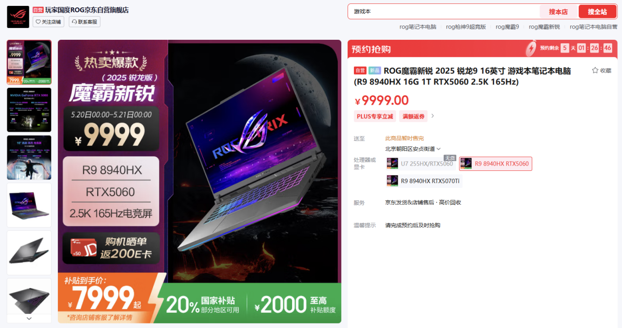 目前,ROG魔霸新锐2025锐龙版已开启预约,搭载RTX 5060独显的版本预约价格为9999元,国补叠加晒单反E卡福利到手仅需7799元,玩家可以关注下。