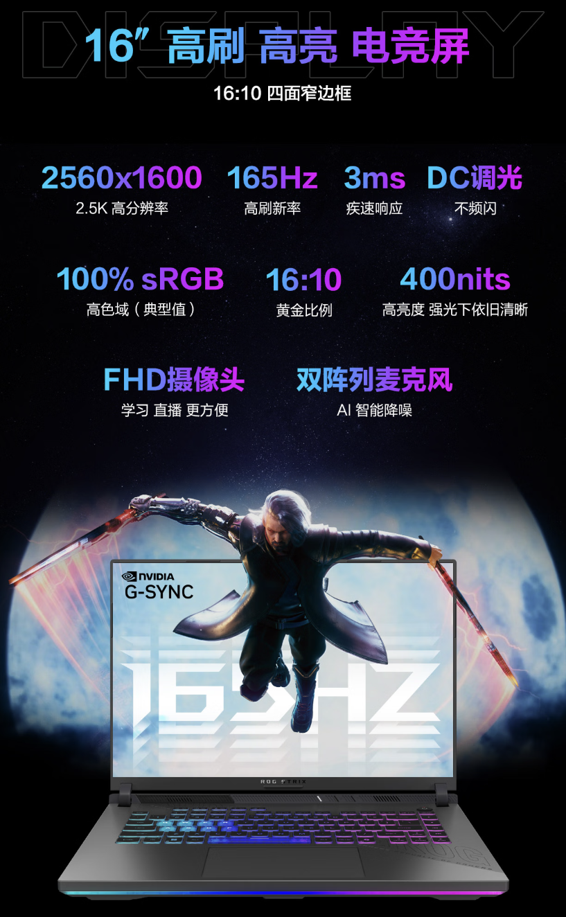 性能出色为玩家带来流畅的体验,而感官体验呢?还是要依托屏幕的素质来支撑。魔霸新锐锐龙版配备窄边框电竞屏。其中分辨率为2.5K,刷新率为165Hz,而亮度则为400nits,能够满足玩家的众多游戏需求。此外,该款产品还使用了16:10窄边框设计,玩游戏观感更沉浸。