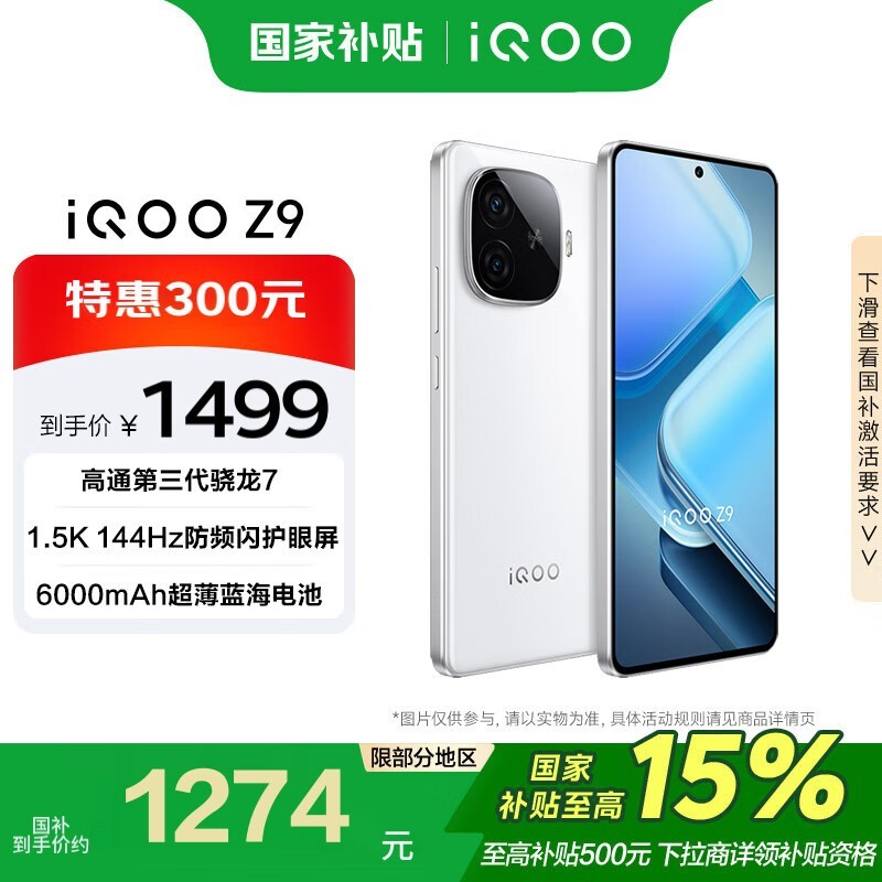 iQOO Z9 5G(12GB+256GB)到手价1499元!