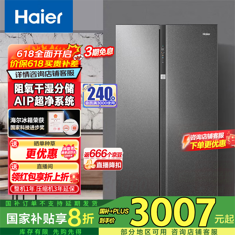 海尔630升双变频风冷无霜电冰箱,活动价2610元!