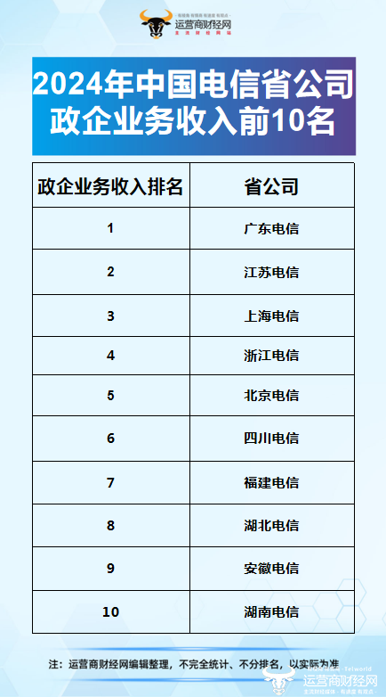 近日,根据知情人士提供的内部数据,运营商财经网梳理出中国电信2024年度省公司政企业务收入的前10名排名,其中北方省公司只占1个名额。具体情况如何?接下来试图揭晓。