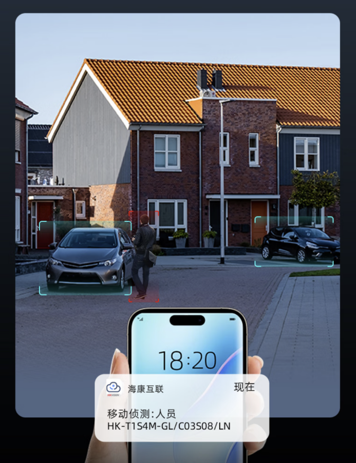 海康威视太阳能AOV摄像头的智能化也进行了升级。在AOV模式下,摄像头可根据设置的时间间隔主动抓拍检测环境,在检测到有人车出现时推送告警信息并录像,未检测到时保留抓拍画面,相比低功耗太阳能PIR检测的检测距离更远,实现24小时不间断守护。用户还可通过海康互联APP实时掌握监控信息,也能手动画出侦测区域,摄像头将在侦测区域出现异常事件时主动告警,智能又贴心。