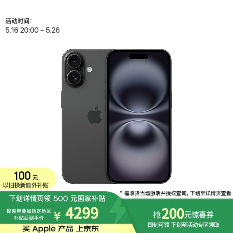 京东16号晚8点iPhone 16优惠,到手4273元