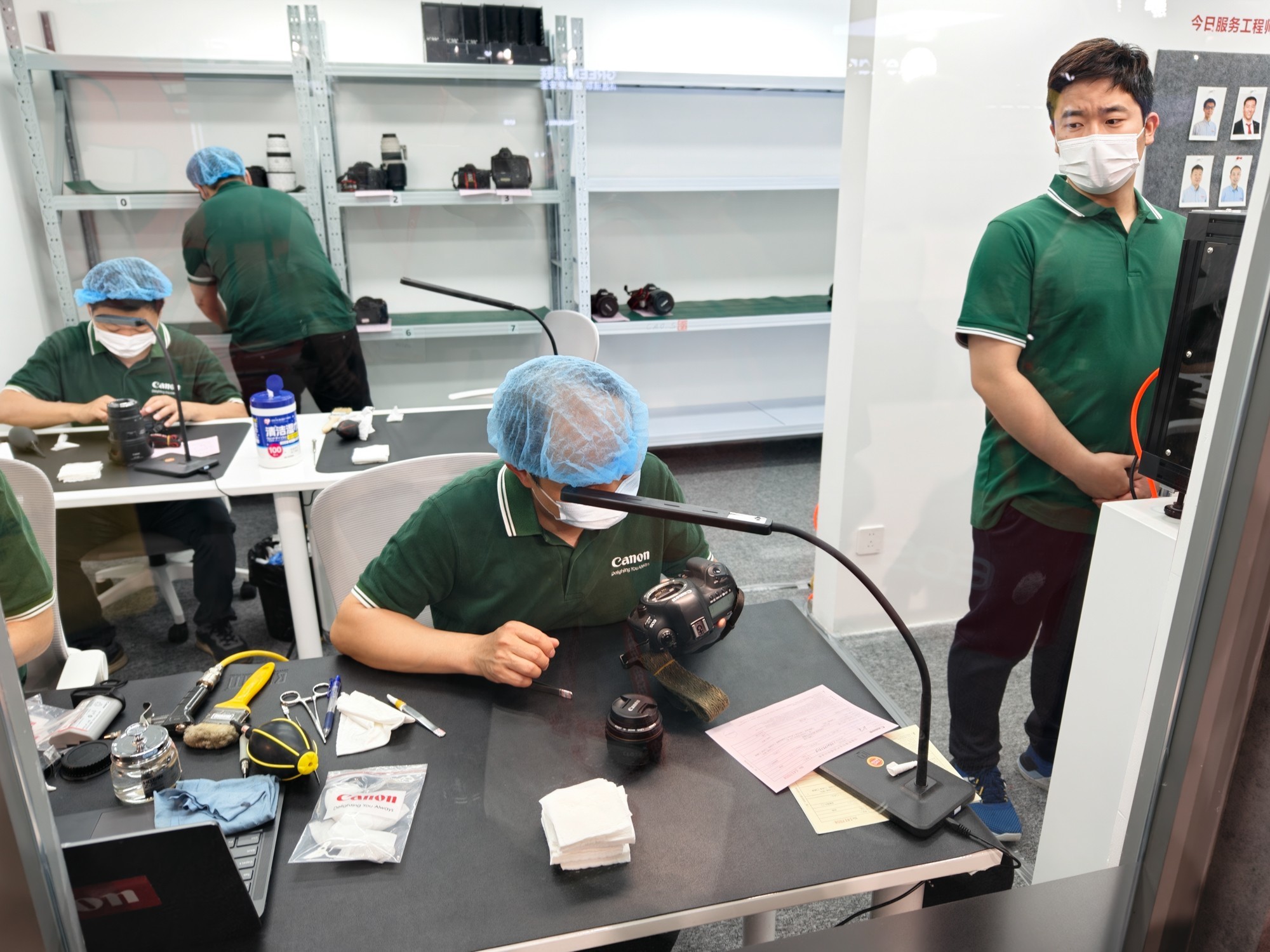 另外,在佳能展台一角,佳能相机专业服务窗口排满了等待佳能专业技术人员现场提供的相机保养服务。这项服务,也是佳能展台的传统项目,佳能相机用户如果需要保养相机,可以到佳能展台免费进行全面保养维护。