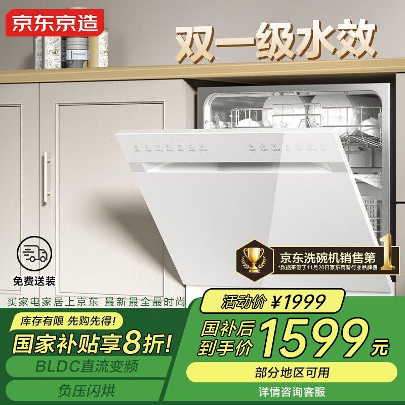 京东京造嵌入式洗碗机12套大容量限时特惠