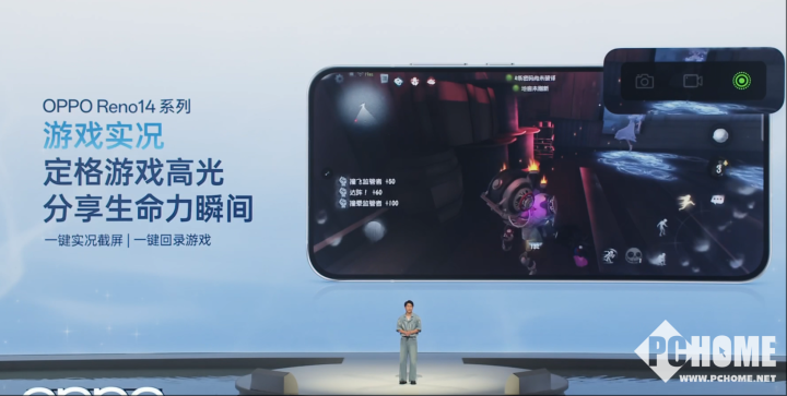 在游戏中五杀或者抽卡出货时,没有及时截屏可能就是终生遗憾。OPPO Reno14 Pro的游戏实况功能,可以进行实况截屏,并且可以进行回录,因此可以在5杀过后惬意一键记录,永不错过我们的游戏高光时刻。
