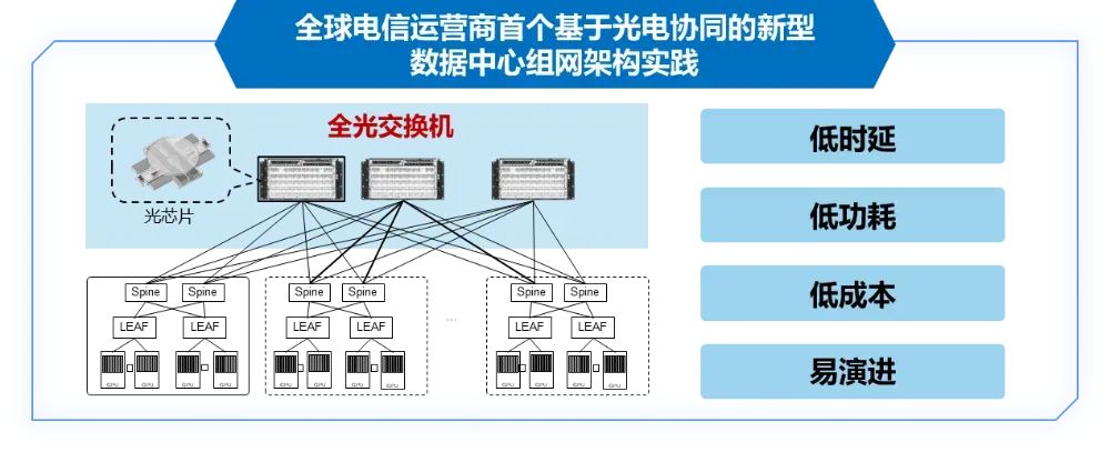 粤港澳大湾区数字经济发展迎来新引擎!中国电信研究院联合中国电信广东分公司近日宣布,在智算网络领域实现重大突破:完成全球首个基于光电协同技术的数据中心新型组网架构现网试验。这一里程碑式成果标志着我国智算中心网络架构实现从跟随到领跑的历史性跨越。该新型智算中心面向未来超万卡集群规模组网的训练、训推一体场景,通过高品质DCN网络为全省提供普惠算力服务,有力支撑AI时代算网融合高质量发展。