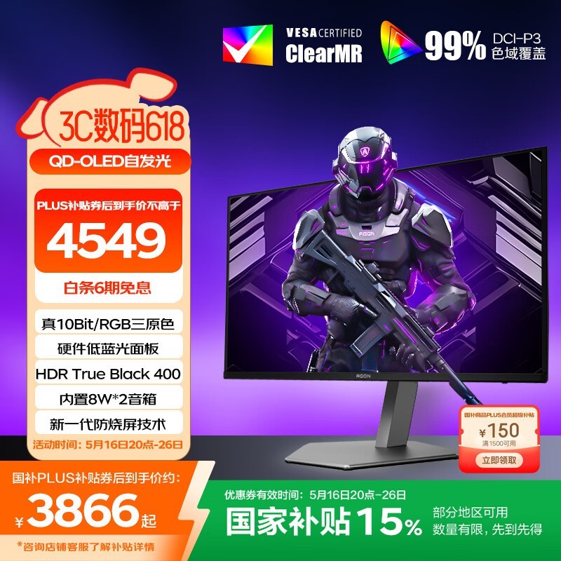 AOC爱攻AG326UD电竞显示器限时特惠3703元