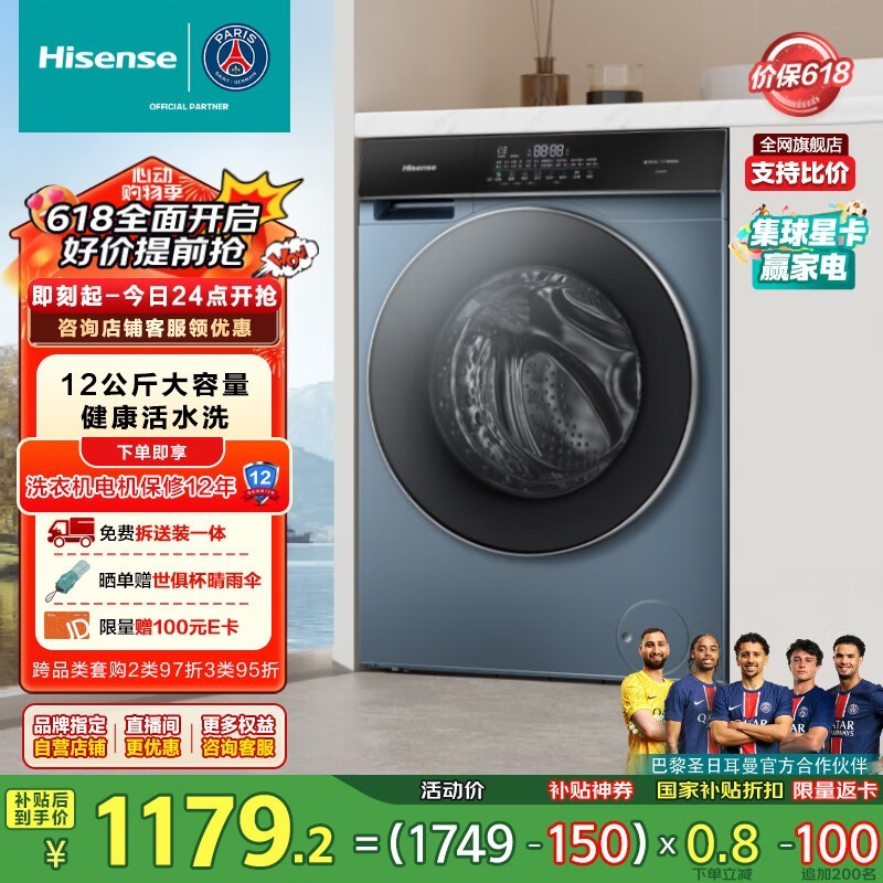 海信滚筒洗衣机12公斤大容量洗烘一体智能投放省空间