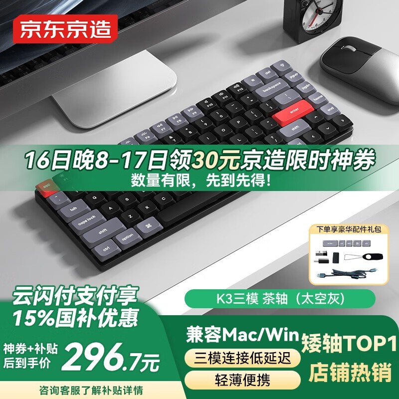 京东京造K3Max机械键盘今晚优惠价296元