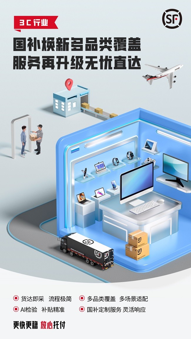 国补热潮仍在持续发力,顺丰服务品类更加丰富,在手机、智能穿戴、平板、电脑等常规品类基础上进一步拓展早教类、学习机、电子词典、闺蜜机等其他品类。顺丰依托成熟的末端交付系统与智能终端设备,提供“国补信息一站式采集”服务,满足产品交付开机/激活图片采集、串码图片采集等需求,当面即办现场闭环,且支持不同客户的差异化诉求。