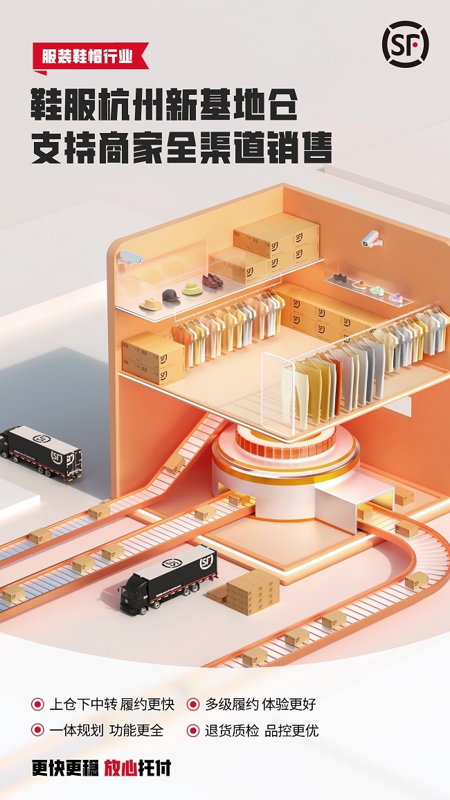 近日,顺丰在杭州新开鞋服基地仓,通过全渠道一盘货+仓配一体服务高效协同,助力商家截单时间更晚,送达时间更早,有效支持大促期间服装鞋帽行业商家全渠道销售。