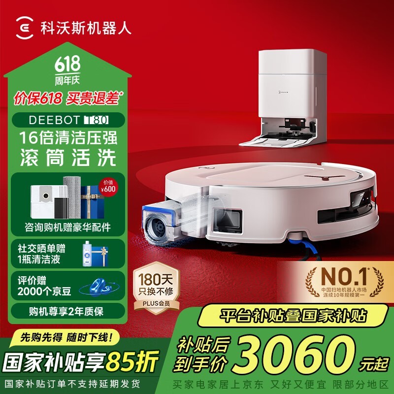 618科沃斯T80水箱版扫拖机优惠价2855元