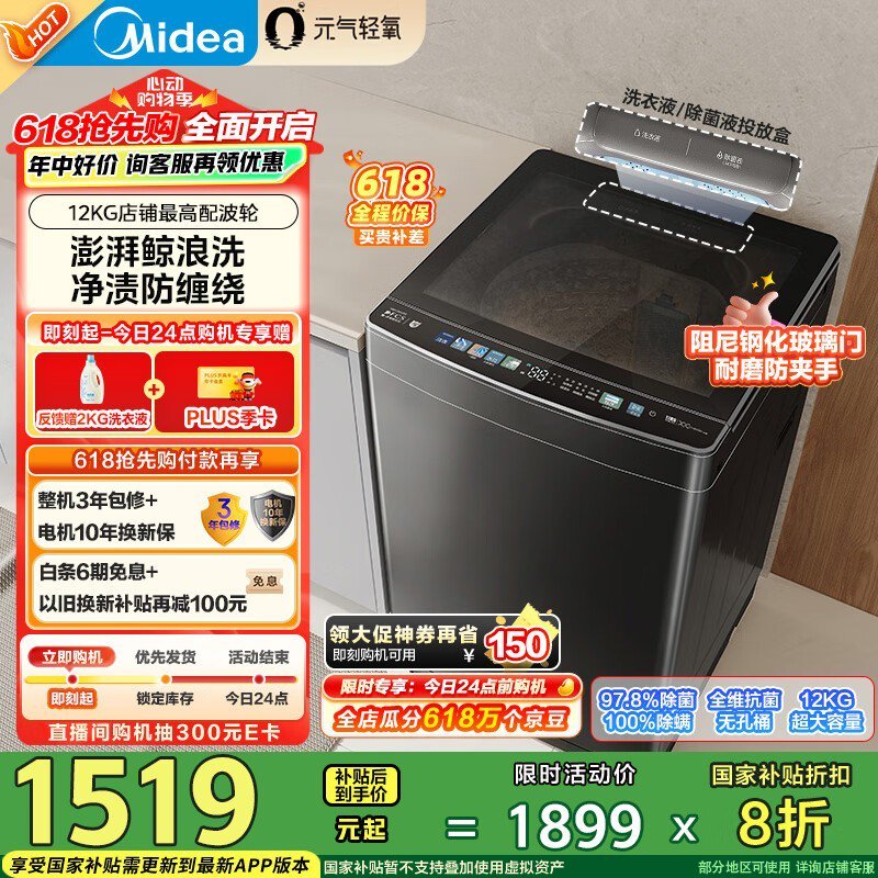 美的元气轻氧洗衣机MB120AIR3预售价1899元