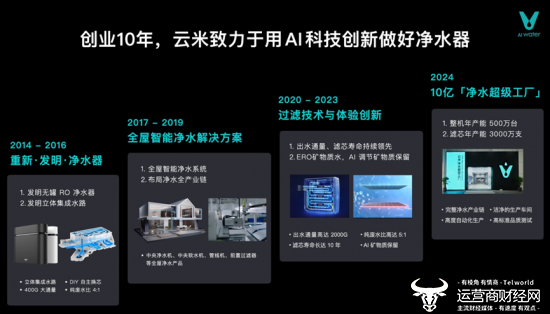 云米创始人陈小平表示,未来10年,云米科技将投入30亿元,持续深耕净水领域,用AI科技创新做好矿泉净水器,让家庭饮水进入矿泉时代。