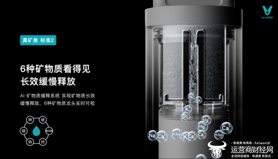 借助AI矿物质缓释系统,实现矿物质长效缓慢释放,6种矿物质通过智能水龙头实时呈现,让用户直观了解水质变化。