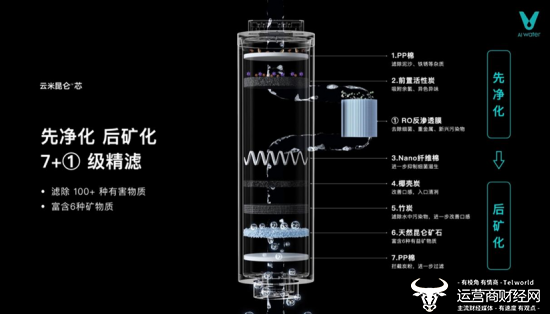 陈小平介绍,矿物质净水器最难的地方在于:矿石滤芯要实现长效且均匀缓释很难,云米独创的AI矿化缓释系统解决了这个痛点,光一个云米昆仑滤芯就申请了150多项专利,陈小平自豪地告诉记者。