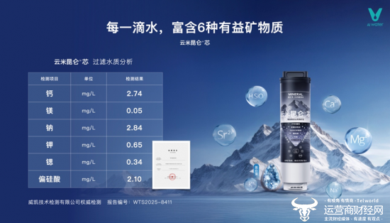 教授级高级工程师冯惠敏先生表示,云米昆仑4矿泉净水器所采用的昆仑石,富含6种矿物质,尤其是锶和偏硅酸。云米运用AI技术,模仿矿泉水的形成过程,使矿物质能缓慢长期释放,经其过滤的水,接近天然矿泉水,为用户带来健康优质的饮水体验。