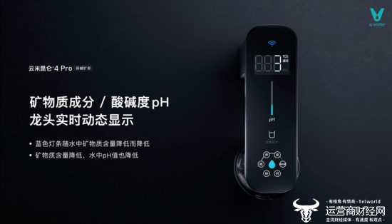 云米昆仑4矿泉净水器搭载“AI算法+智能传感器”,实现了对水质的实时监测。通过先进算法与灵敏传感器协同,精准捕捉水质变化细节。配套的智能触屏水龙头更是一大亮点,可实时动态显示水中矿物质成分与酸碱度pH值。蓝色灯条会随水中矿物质含量降低而变化,直观呈现水质情况。同时,矿物质含量与pH值相关联,含量降低时,pH值也随之降低,让用户对水质状况一目了然。
