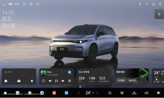 全新的LeapMotor OS 4.0 Plus交互系统,有着全新实时感知3D桌面、实时双屏SR环境模拟显示,以及丰富的个性化定制功能,支持白天/夜晚场景切换,还可以切换不同天气状态。