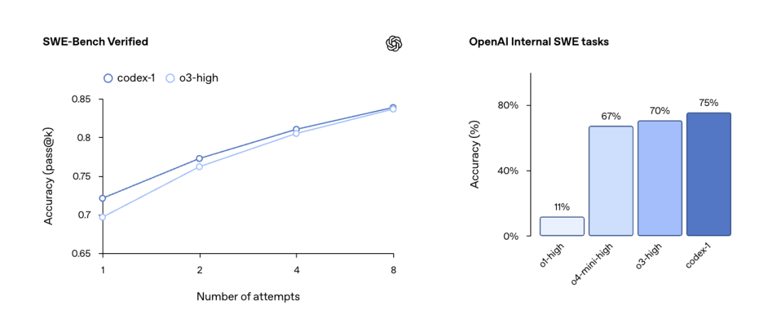 与 o3 相比,codex-1 始终能够生成更清晰的 patch,以便立即进行人工审核并集成到标准工作流程中。