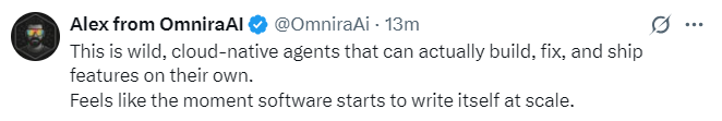 也有人认为,Codex 这个云原生的智能体实际上可以自行构建、修复并交付功能,感觉就像软件开始了大规模自我编写。