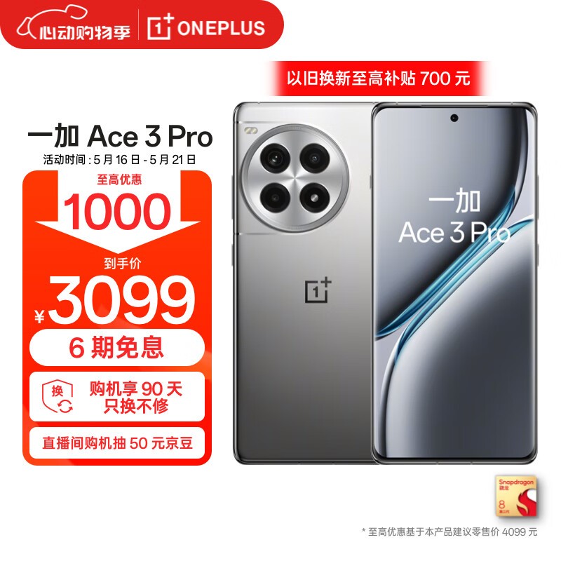 一加Ace 3 Pro 5G手机京东优惠价低至3033元