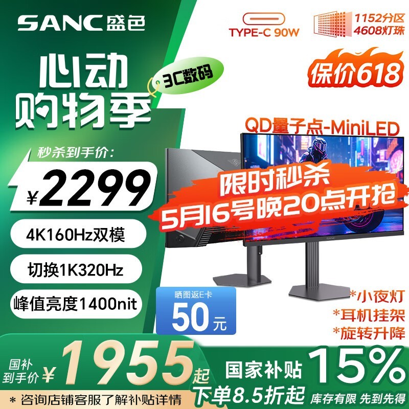 SANC 27英寸电竞显示器京东优惠价1749元