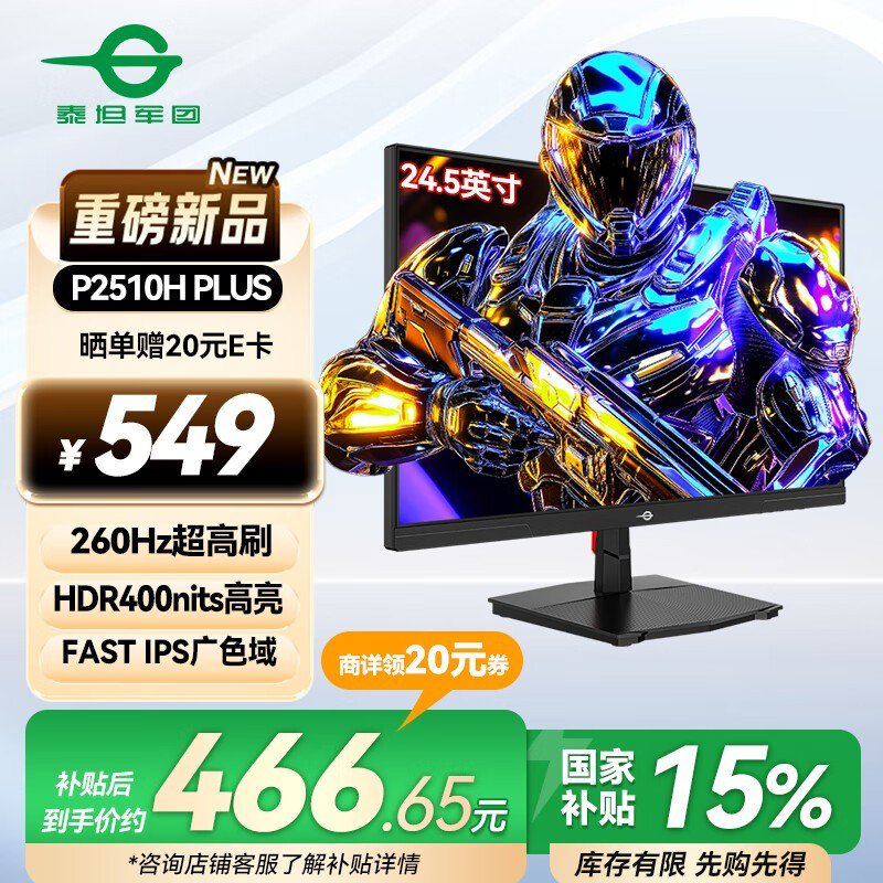 泰坦军团P2510H PLUS 24.5英寸电竞显示器限时特惠519元