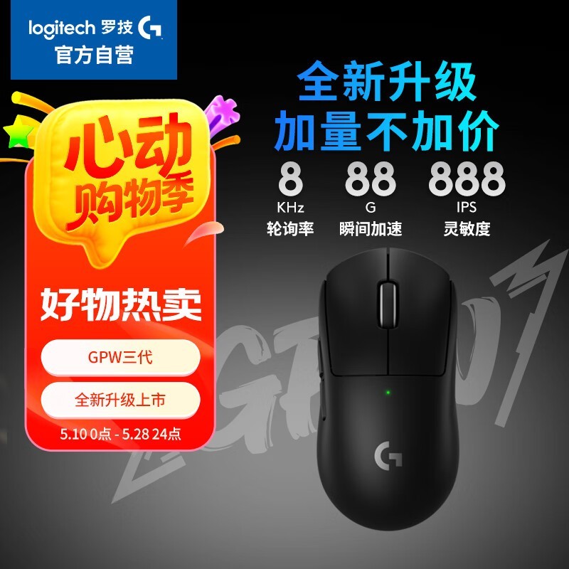 罗技GPW三代无线鼠标黑色款京东919元热销