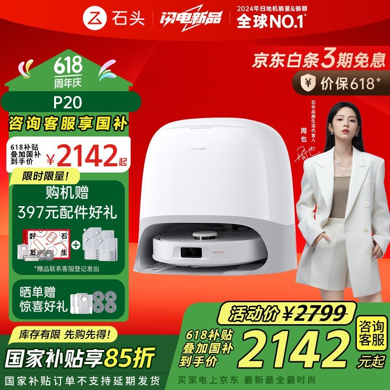 Roborock扫地机器人P20限时特惠1786元