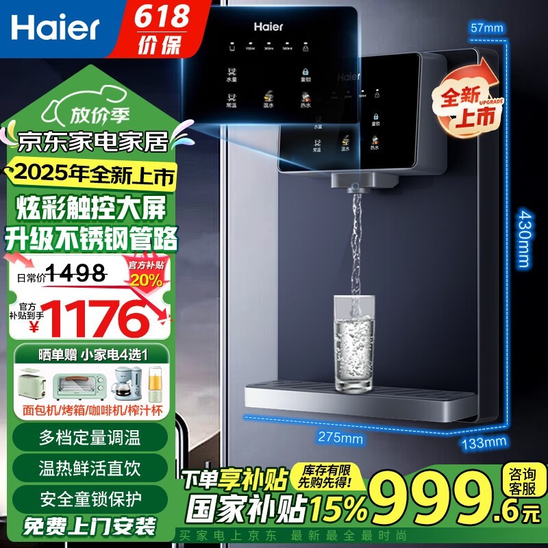 海尔HaierRO反渗透加热直饮机限时特惠976元