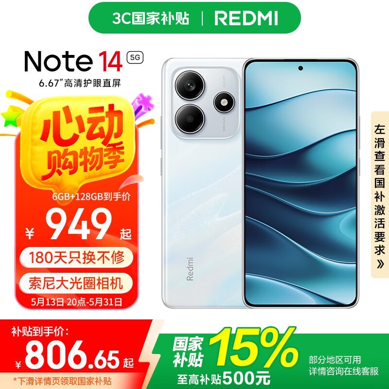 红米Note 14 5G手机(8GB+128GB)优惠价949元