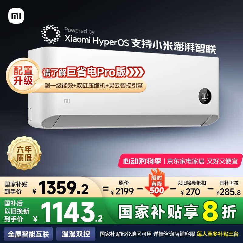 小米空调巨省电系列大1匹壁挂式,新一级能效直降超值