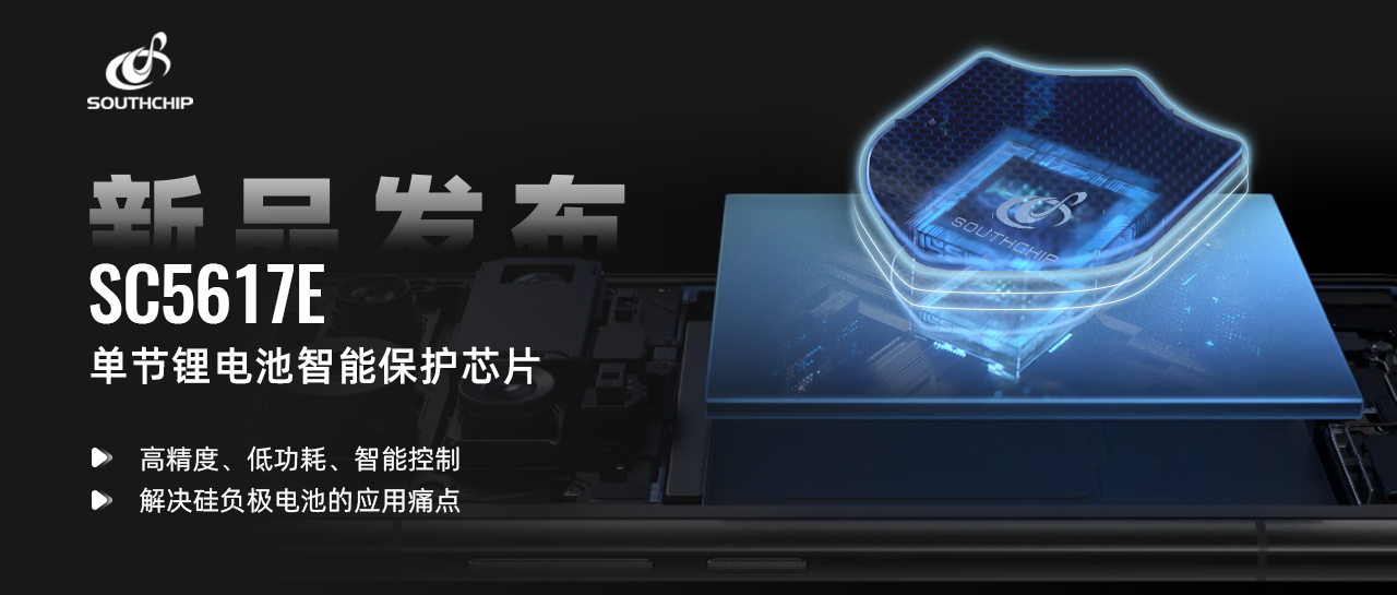 近日,南芯科技宣布推出带控制引脚的锂电保护芯片 SC5617E,有助于解决硅负极电池的应用痛点。SC5617E 面向单节锂电池充放电,具备高精度、低功耗和智能控制三大优势,为手机、平板等移动设备的单节电池包提供更加智能高效、安全准确的 BMS 解决方案。