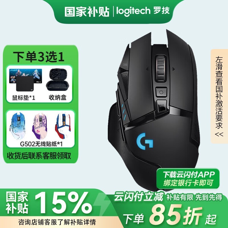 罗技G502无线鼠标黑色款,原价479现368