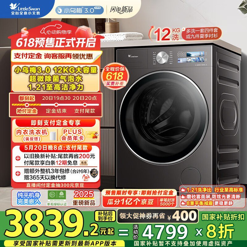小天鹅滚筒洗衣机,多重优惠低至2956元
