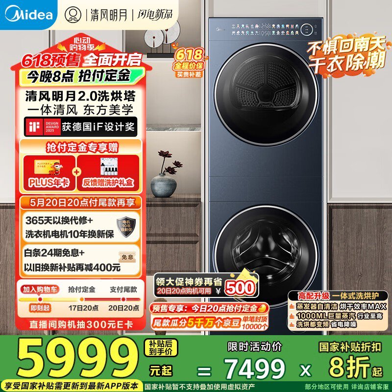 美的洗烘套装MGH20A - N+PRO(海岸蓝)超值优惠