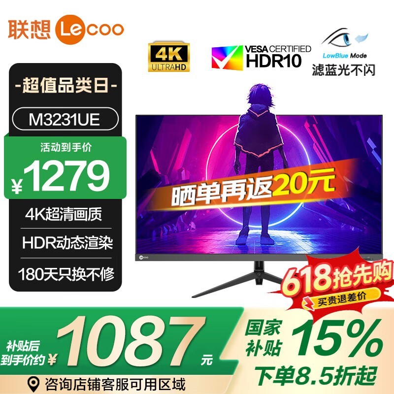 ThinkPad 32英寸4K显示器限时特惠1066元