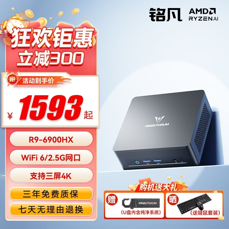 铭凡 UM690WT 迷你台式机 白色限时特惠1593元