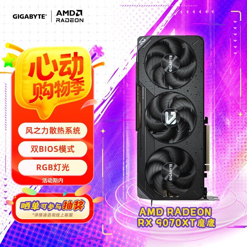 技嘉9070XT显卡电竞游戏高性能AI加速优惠价5819元