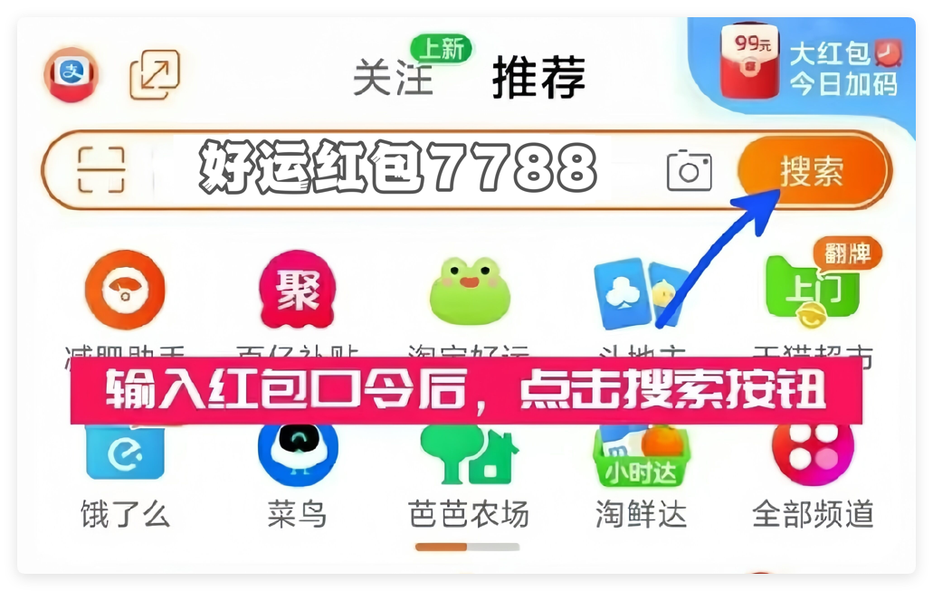 红包口令:淘宝APP搜索“好运红包7788”,每日领1次无门槛红包,最高25888元。