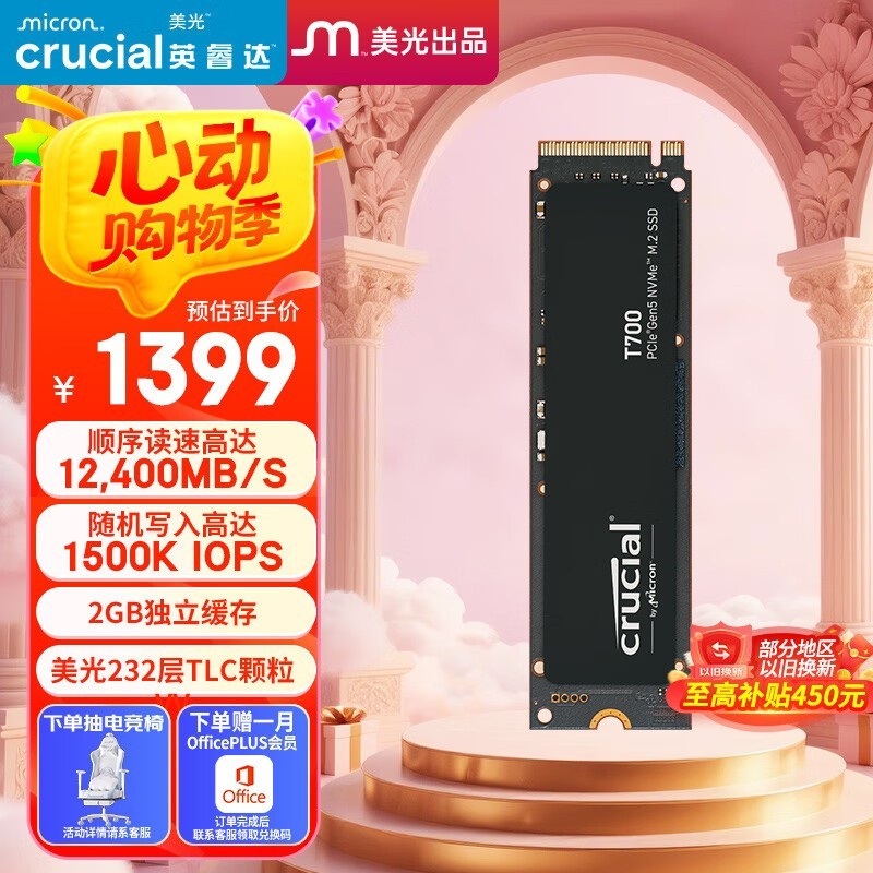 Crucial T700 2TB固态硬盘限时优惠1399元